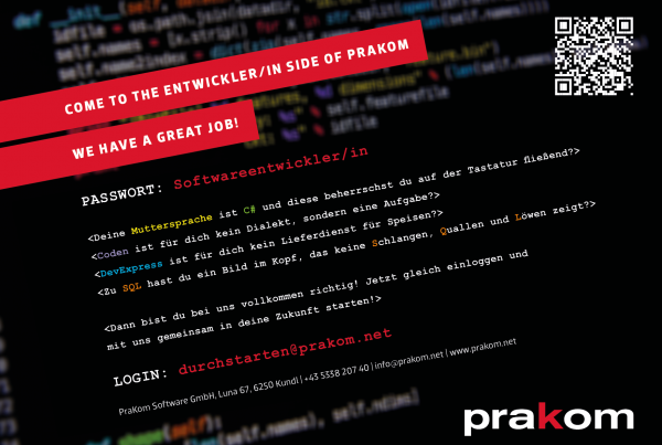 Wenn Du eine neue Herausforderung in einem innovativen Softwareunternehmen suchst und über die erforderlichen Fähigkeiten verfügen, komm zu PraKom!